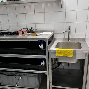 В этой небольшой лаборатории один прибор OverGrower управляет выращиванием сразу в двух зонах одновременно - проращивание семян и выгонка до стадии рассады и доращивание растений до технической зрелости.