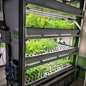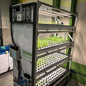 - Стеллажные гидропонные установки CityFarmer — компактные модули для выращивания салатов, зелени и пряных культур. Позволяют максимально эффективно использовать площадь: вертикальные ярусы создают «ферму в миниатюре». Полностью автоматизированы, поддерживают оптимальный режим питания и полива растений.