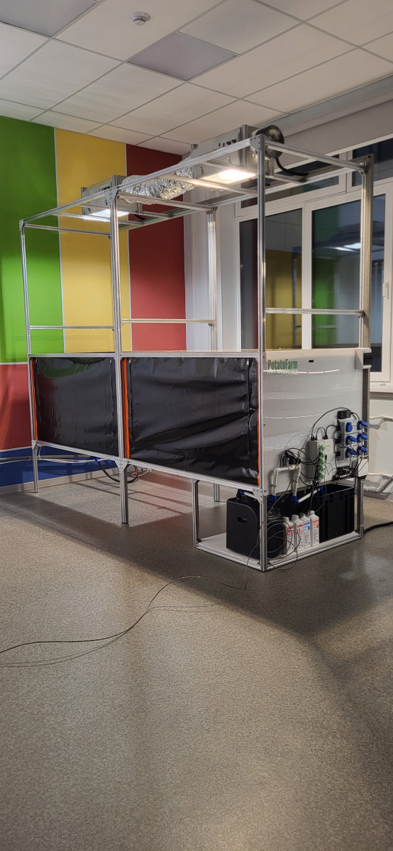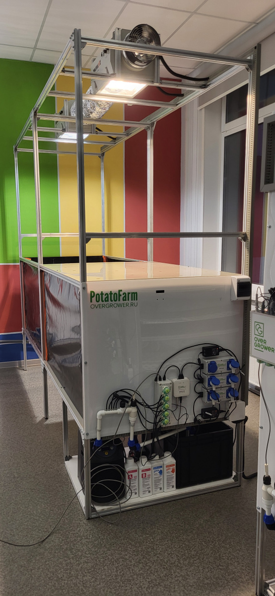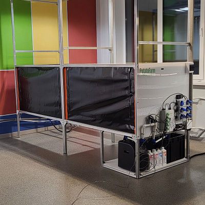 Аэропонная система PotatoFarm позволяет круглогодично выращивать растения в закрытых помещениях с искусственным микроклиматом, обеспечивая полностью здоровый и безвирусный семенной материал из пробирочных растений.